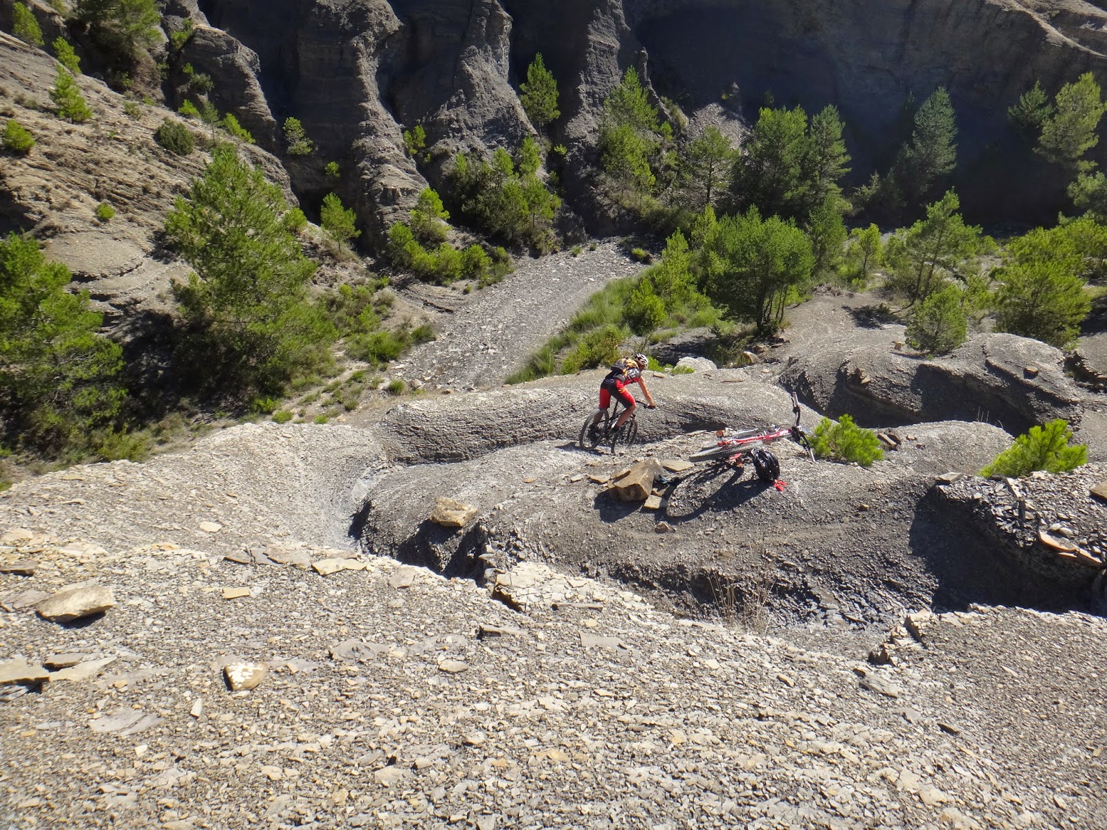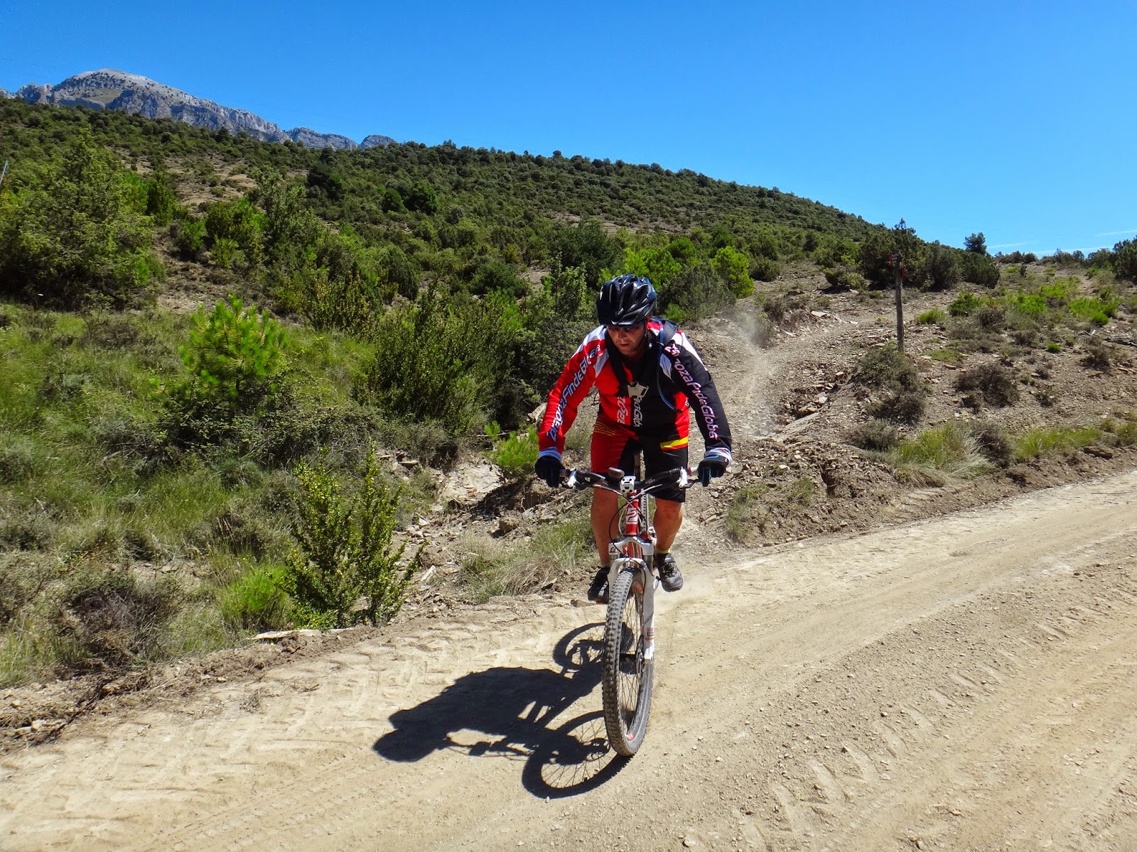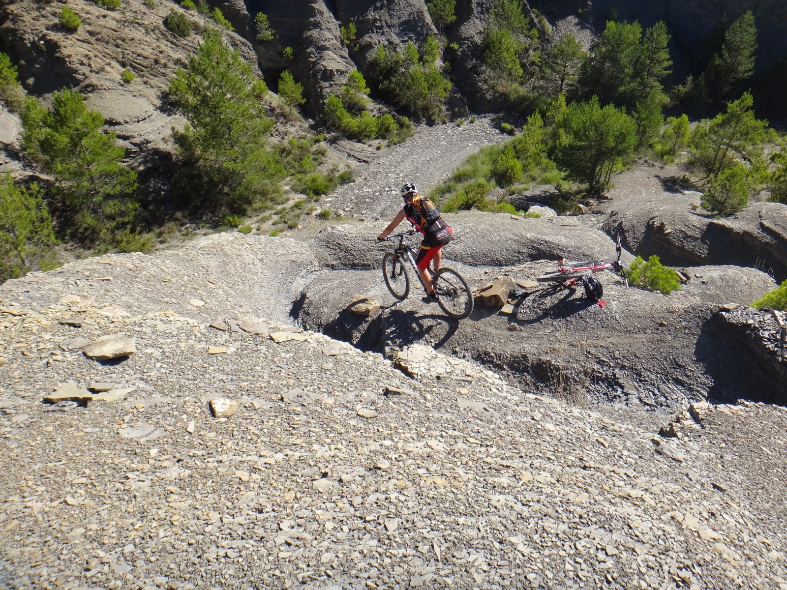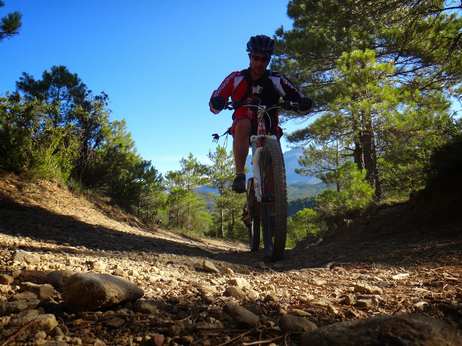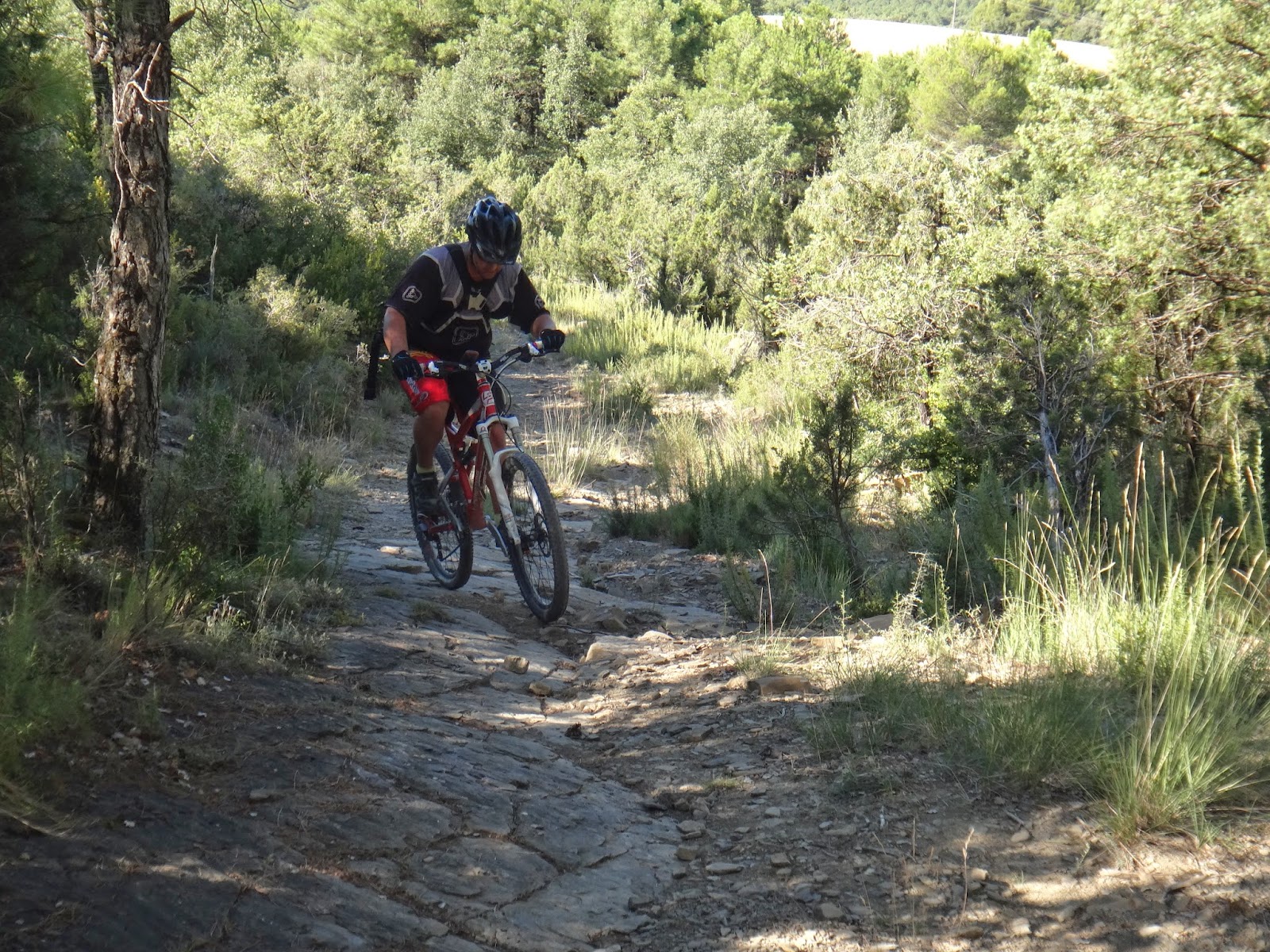 Primera bajada de la mañana donde el sol hace de las suyas y es que es difícil concentrarse en el terreno cuando la vista justo tiene como horizonte al astro rey así que piano piano vamos otra vez camino del río... Aquí voy a pararme un poquito y es que si no son pocas las bajadas que me gustan esto que viene a continuación no tiene descripción y solo los que lo hemos hecho sabemos como se disfruta así que en vez de poneros los dientes largos... ver las imágenes vosotros mismos y opinar.